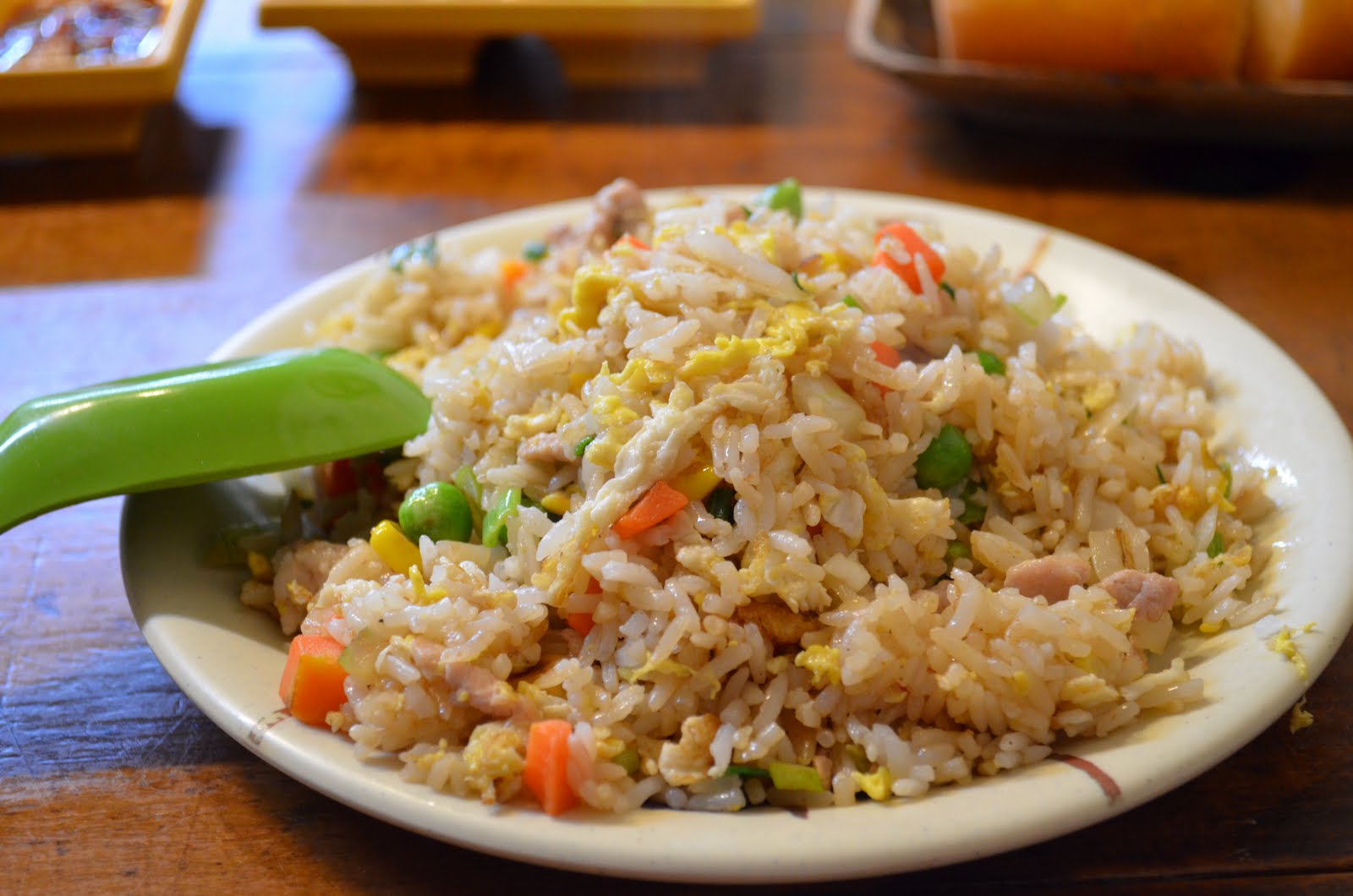 NT 60 肉絲炒飯,蛋絲、洋蔥、冷凍蔬菜和飯。表現十分中規中矩,飯也炒得很乾鬆,跟一般的炒飯不一樣,他沒有加胡椒粉,是比較清淡的炒飯。