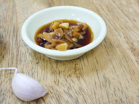 在等待上麵的空檔,一邊看電視一邊剝蒜頭皮,順便拿了一碟蒜頭醬油,這醬油有加醋,微酸的口感再配上蒜頭香氣,讚!!!
