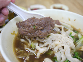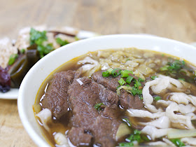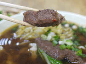 看看這個厚度!!! 每塊都1公份起跳,這才叫厚切,咬下去的瞬間,牛肉裡面冒出八角跟中藥淡淡清香,肉質軟嫩而不柴,把肉吞下肚後再舀口湯喝,湯的味道相對就變清淡順口,讓人停不下來。