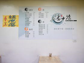 牆上菜單分四大類,湯麵、乾飯麵、餃及湯,店裡並沒有紙製品的菜單讓客人勾選,蠻環保的,都是直接口頭跟老闆娘點餐。湯麵最便宜60元,乾麵類最便宜40元,品項控制的很好,並沒有過多或是過少的情形。