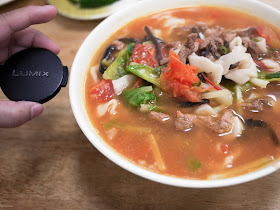 NT 80 蕃茄肉絲麵。我都帶我的小DC出門,有時鏡頭蓋權充比例尺。