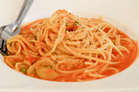 NT 100 義式番茄磨菇麵,裡面一樣有玉米和青豆,我吃了一口,和我的清淡白醬比起來,口味很鮮明,很多人初次到陌生的義大利麵店都會點紅醬,因為不會難吃到哪裡去。