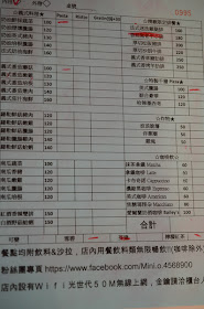 菜單,紅色被畫掉的部份是沒有提供。我沒聽清楚是今天沒提供還是以後都不提供。芬達那裡變柳澄汁。
