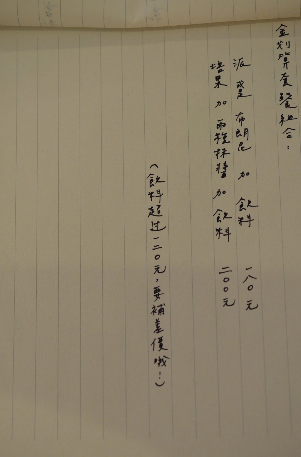 手寫菜單第一頁,因為店家還沒固定要賣什麼,變動太大的情況下,只好用手寫