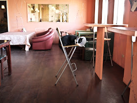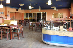 店門進來左手邊是吧台。牆竟然是粉紅色,而天花板是藍色,太有個性了。