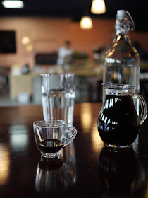 之前在別的地方喝過阿助那裡的剛果和哥斯大黎加,對他的豆子印象非常深刻。今天第一次到店裡,阿助開了幾瓶咖啡豆給我聞,剛果豆聞起來就是焦糖的香甜味,腦袋中比較有印象的也是剛果豆 (Kivu),很好喝~中段有很濃的花香味(茉莉花?)花蜜甜和茶感,茶感像綠茶或是青茶,最後冷掉就一直保持和中段差不多的酸度,尾巴有一點葡萄的味道。