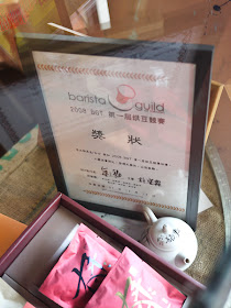 這也是獎狀,旁邊是濾掛或是濾泡式咖啡包。