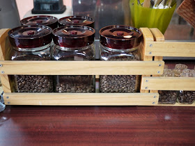 很特別且吸睛。用玻璃瓶裝烘好的豆子,一瓶瓶很可愛,送禮也很有趣。