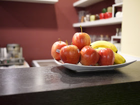吧台上的水果都是新鮮貨,並不是塑膠製品,進口蘋果聞起來香香的,店家會用吧台上的水果做餐飲。