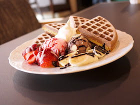 Waffle --- 用鬆餅機烤,外表酥脆的格子狀鬆餅