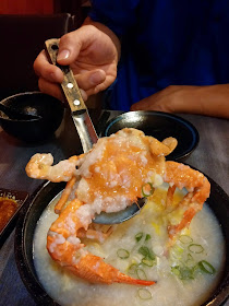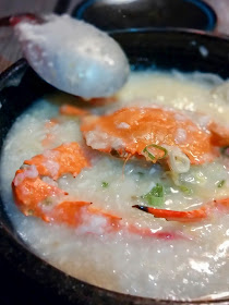 一人一鍋的花蟹粥,真的太靠北了,我是說花蟹大到太靠北,比家用大湯匙還大隻是怎麼一回事?! 看到其它桌點套餐的客人也是一人一鍋,老闆怕客人吃不飽,余甚感欣慰,幸好老闆體諒我們是小鳥胃,兩人套餐只送一鍋來,含著眼淚也要吃完。