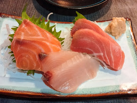 生魚片,兩人份,吃到不新鮮的生魚片我可是會皺眉頭的喔,保存不當的生魚片不止口感不佳,在嘴巴中殘留的腥味更是可怕,但是我一直很放心井味屋的生魚片,老闆原本就是做漁產批發,選魚、挑魚的眼光超好,魚料一直是井味屋的強項,大目鮪魚、鮭魚肚、紅魽,每一片都是入口即化,油脂豐富,新鮮度之高就如同現撈,再加上現在井味屋採少量進貨,新鮮至上的原則,單點 5片 280元,魚種也不會只局限在某幾種大眾化魚類,可嚐到不同魚肉,我想不到要去桃園哪裡才能吃到這麼好吃又CP值高的生魚片,我說真的...可能真的有很好吃的生魚片,有可能店家也是直接跟老闆批魚,只是價格就是另一種境界(遠目)