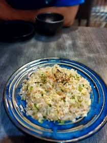 因為怕吃不飽而單點的 NT 100 鮭魚炒飯,切成和米粒大小一般細碎的鮭魚,和蛋、蔥花、香鬆等配料以大火快炒,剛上桌會覺得有一點濕,入口各種味道均勻散開又結合在一起,我想了一想似乎欠缺什麼味道,我想是味精的味道吧。