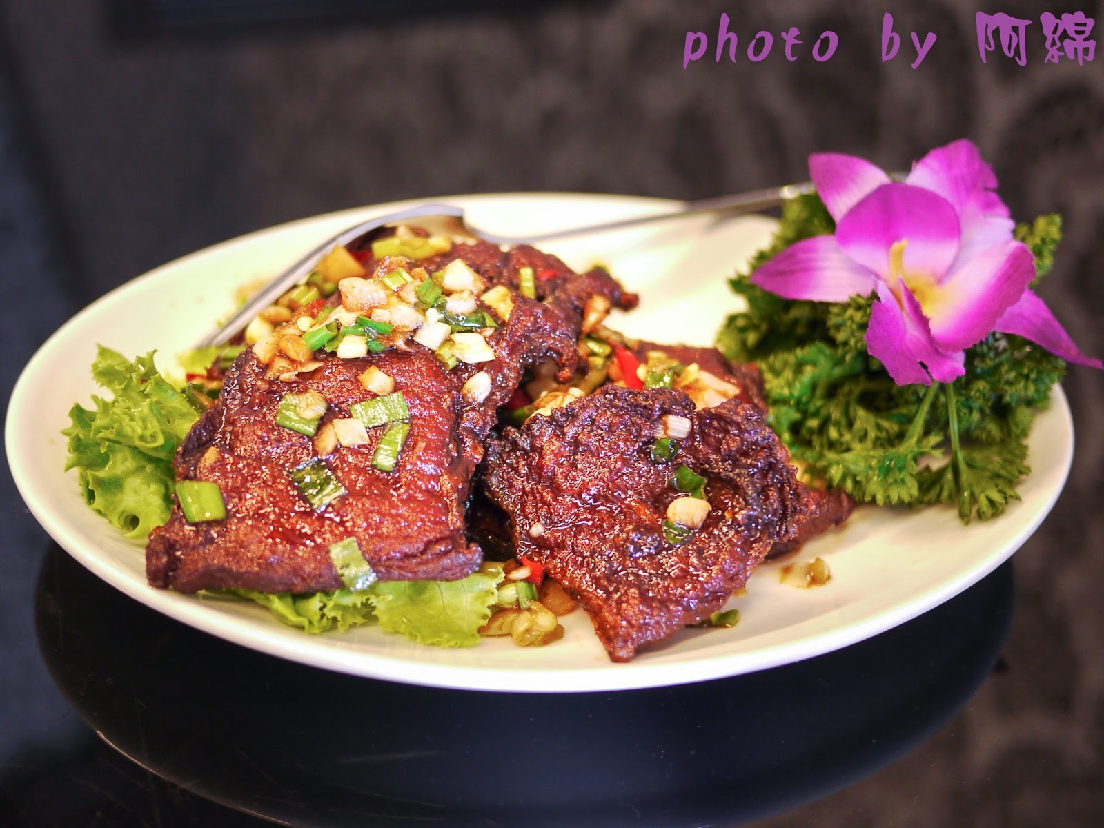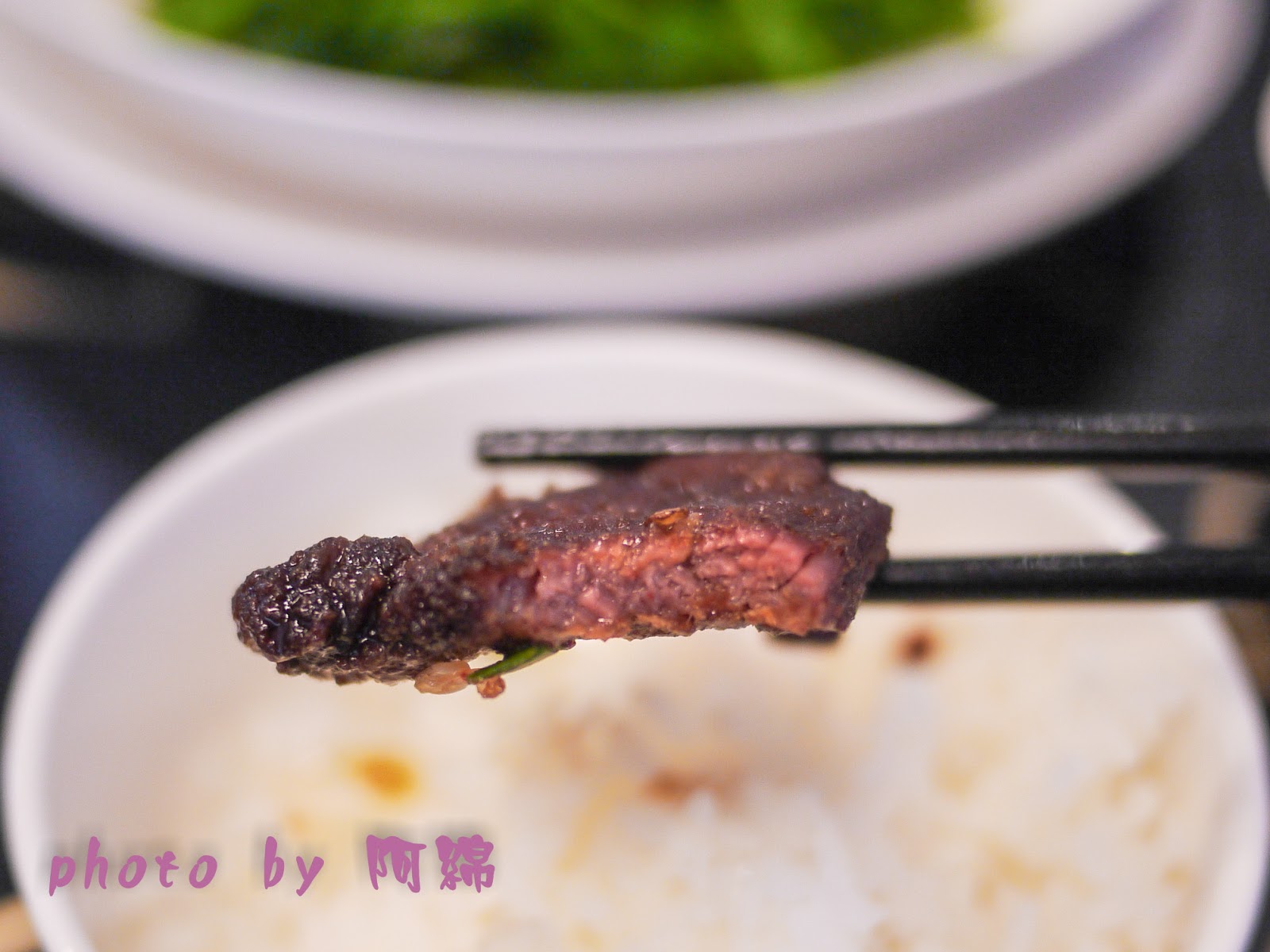 看起來像是烤豆干,港式美極鮮醬和蔥蒜辣椒炒入鮮美的牛小排中,鹹甜交錯,牛肉口感略脆,愈嚼愈香,非常下飯。