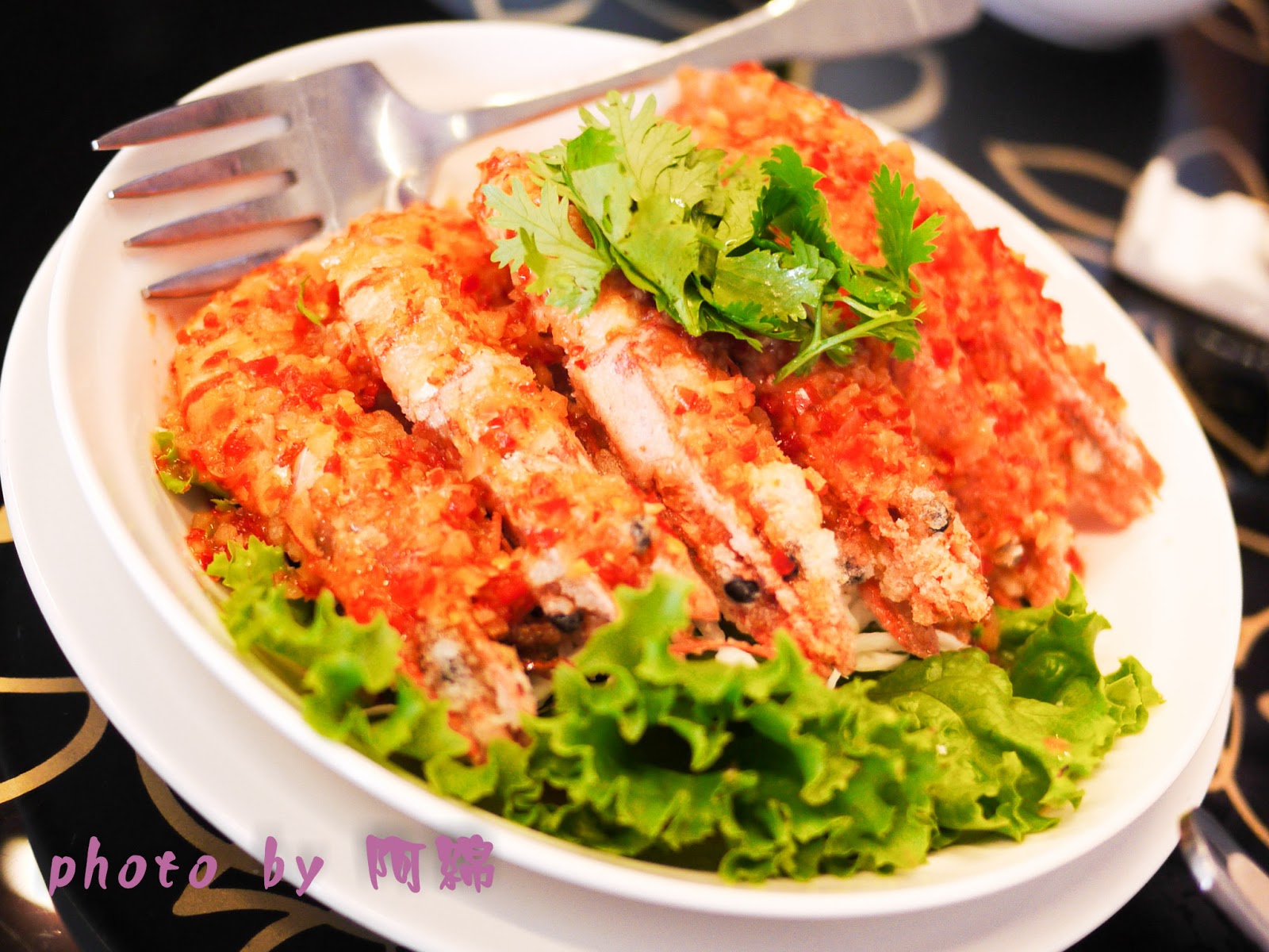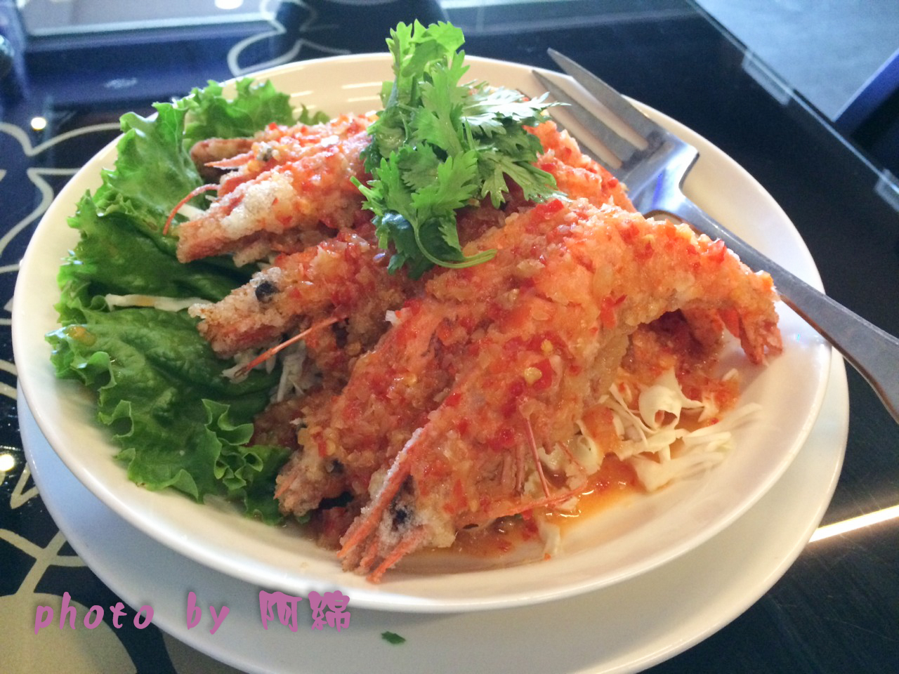 師傅先油炸,用大火和熱油鎖住蝦肉的美味,裡頭的蝦肉仍然保有彈牙多汁,蝦子上層淋檸檬汁,最下層擺生菜,酸甜好味道一整個清爽開胃。