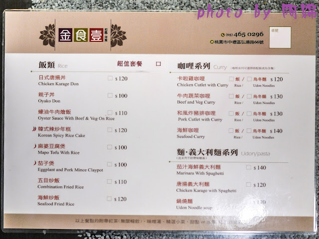 雖然我是點每日超值特餐,還是要拍一下菜單,菜單分成三類 : 飯類/咖哩/麵.義大利麵,價格落在 100-140元的區間,算平價。