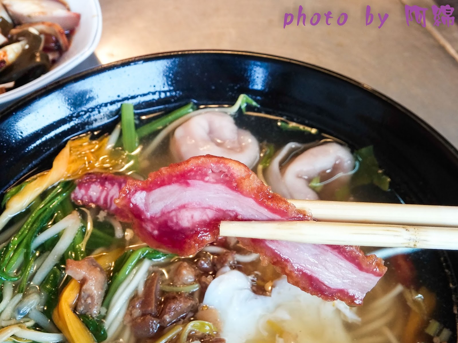 紅槽肉好吃,整碗麵裡我最喜歡的配菜,吃起來有甜甜的味道還帶點蒜味,讓人意猶未盡。